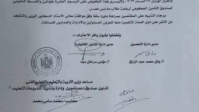 تخفيض المصروفات لابناء العاملين بالتعليم او على المعاش بنسبه ٥٠%