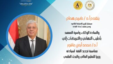 *مدير معهد إعداد القادة واسرة المعهد يهنئون د. أيمن عاشور لتجديد الثقة به وزيرًا للتعليم العالي والبحث العلمي* يتقدم الدكتور…