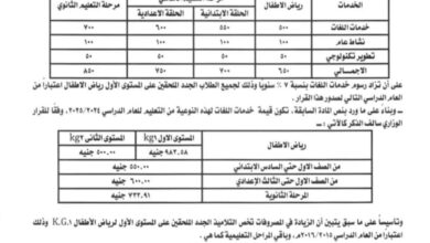 بنسبة 7%.. التعليم تعلن زيادة رسوم خدمات اللغات في مصروفات المدارس الرسمية 2025 *********************************************************************** أعلنت وزارة التربية والتعليم والتعليم الفني،…