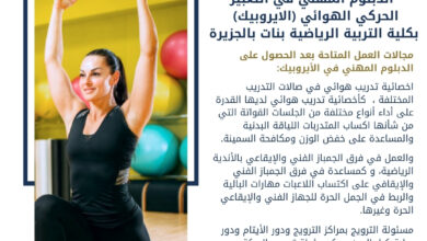 “تعرف على الدبلوم المهني في التعبير الحركي الهوائي (الايروبيك) بكلية التربية الرياضية بنات جامعة حلوان*