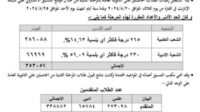 روابط الاستعلام عن نتيجة تنسيق المرحلة الثانية للثانوية العامة والحد الادني للقبول بالكليات بالدرجات * سيتم اعلان النتيجة “الثلاثاء ”…