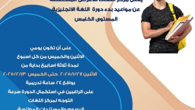 مركز اللغات المتخصصة بجامعة حلوان يعلن عن بدء دورات اللغة الإنجليزية في إطار جهود جامعة حلوان لدعم الطلاب والباحثين…