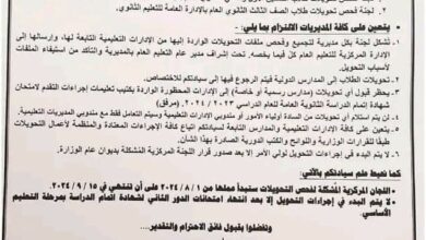 التعليم: تشكيل لجنة للموافقة على تحويلات طلاب الثانوي العام 2025