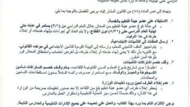 رسميًا كل معلم بلغ سن المعاش اعتبارًا من 1 / 9 الجاري أو سيبلغ السن خلال العام الدراسي الحالي، سيستمر…