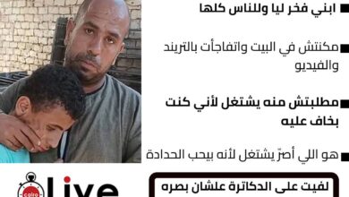 والد الطفل شنودة العامل الكفيف داخل ورشة حدادة بالمنيا: